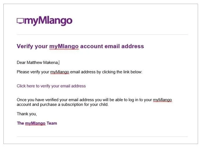 3 You will shortly receive an email from myMlango containing a link to verify your registered email address. Please click the link once to activate your account.