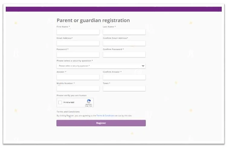 4 Now, please enter your child’s details and some brief details on the school they currently attend, and then click Next. Please review the details you have entered to ensure that they are correct, and then click the Register button.